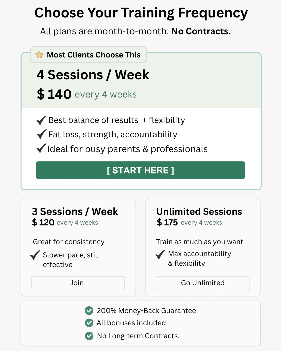 Each RawβFitness session breaks down to $8β$10 per workout... less than what most people spend daily on: